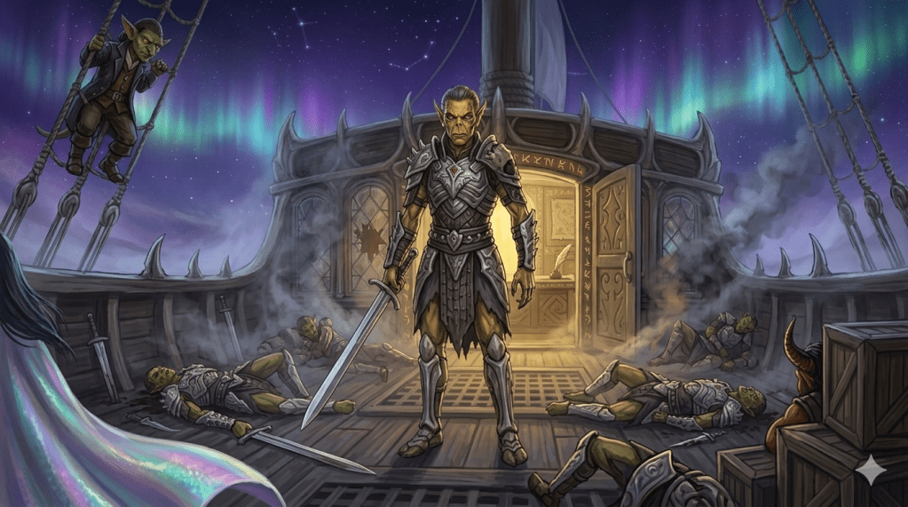Kith-Commander Vael of the Third Expeditionary stepped out into the silver light of the void and the fog-thinned afternoon. He did not hurry. He surveyed the deck in silence, assessing each threat methodically.
